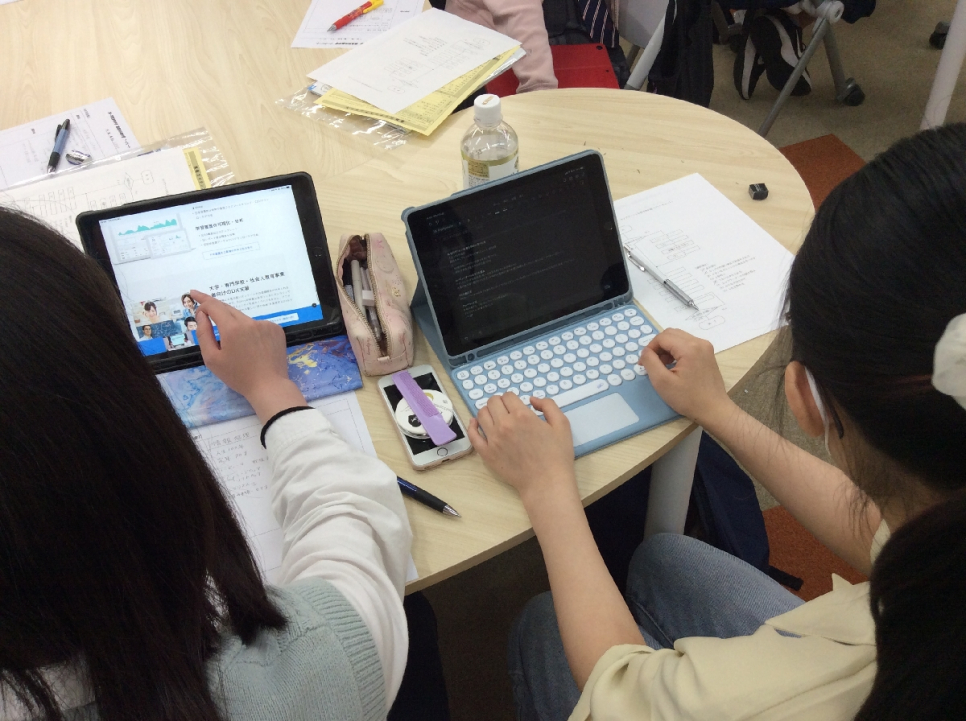 タブレットにメモをしたり、情報を調べたり自分なりに調べまとめています。