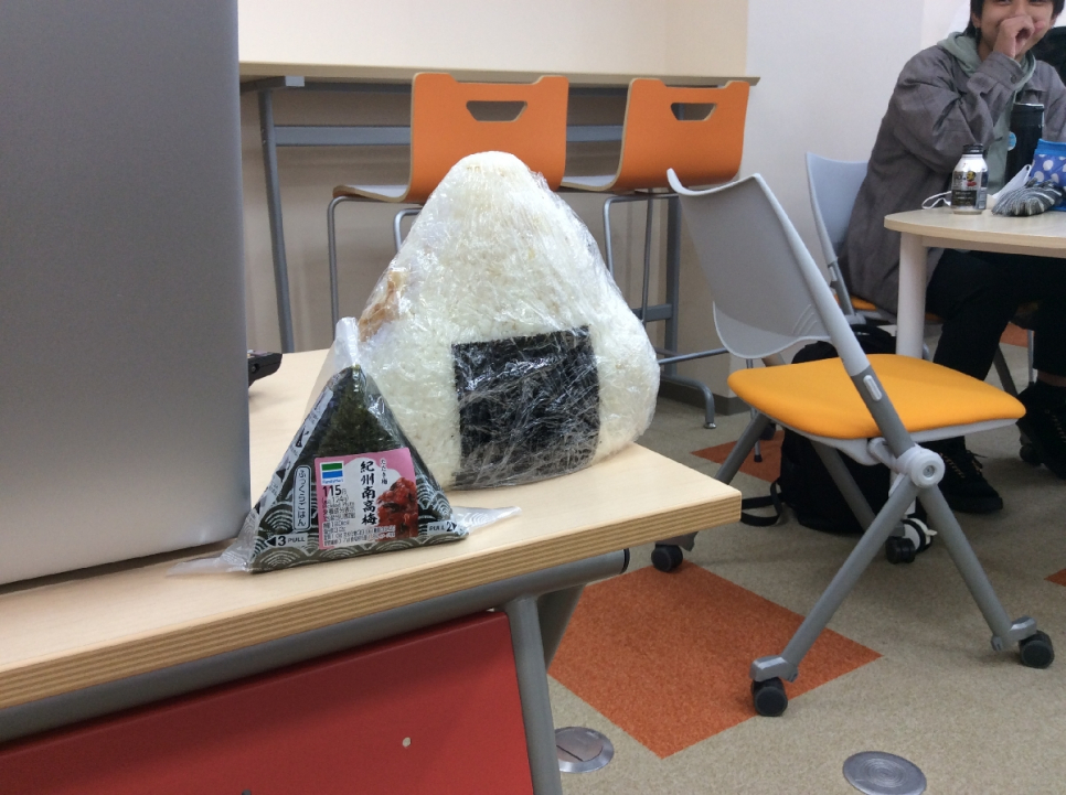 当日は自分でおにぎりを作ってきたり、コンビニで買ってきたり、超特大おにぎりを拝むこともできましたね(もちろんすべて食べきりました)。
