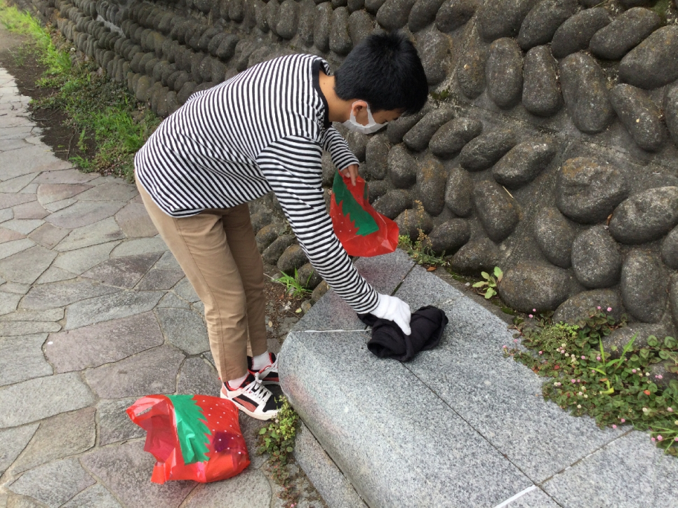 清掃プロジェクト①:清掃活動+国体応援の同時進行です。