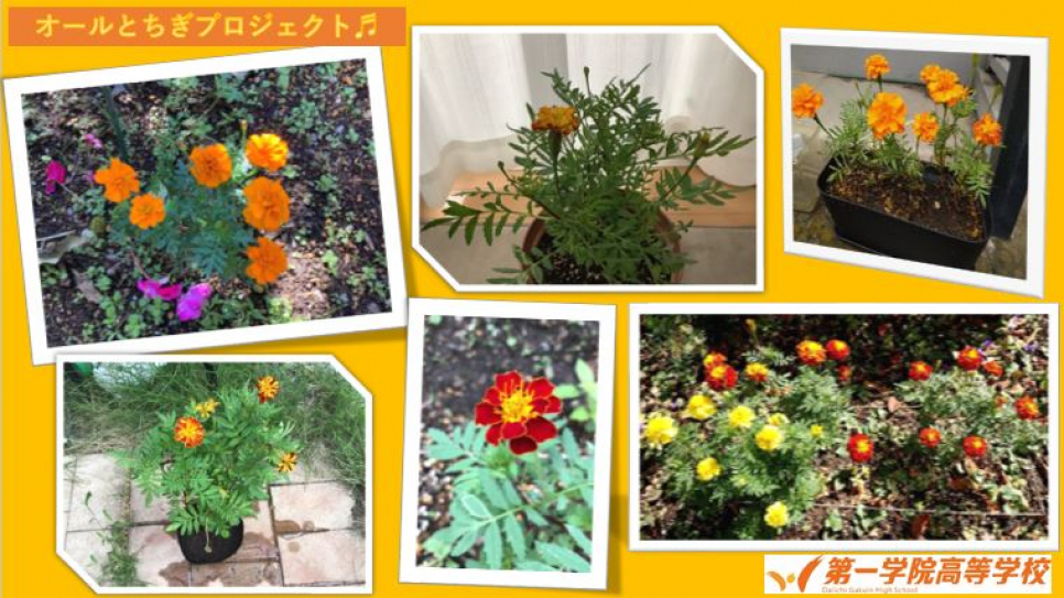 生徒たちに協力してもらいおうちでマリーゴールドを育てました。