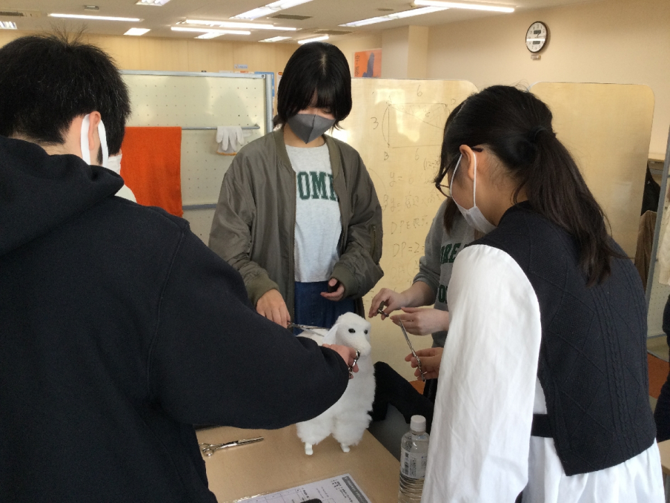 動物分野では、実際のはさみを使ってのトリマー体験を行いました。