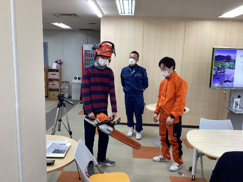 チェーンソーを実際に触ることができました。
