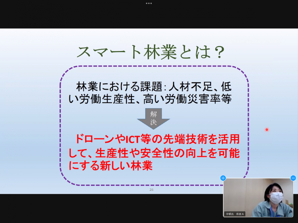 森林や林業の現状についてや実際にお仕事をされている方からのお話など、