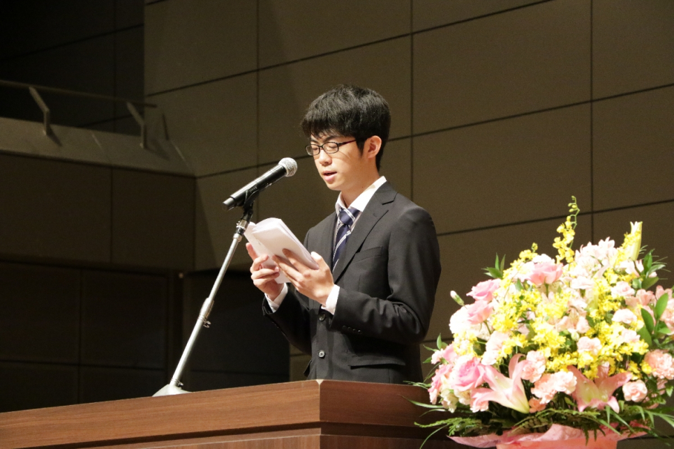 在校生の歓迎のあいさつは、ピアサポーター代表が務めました。