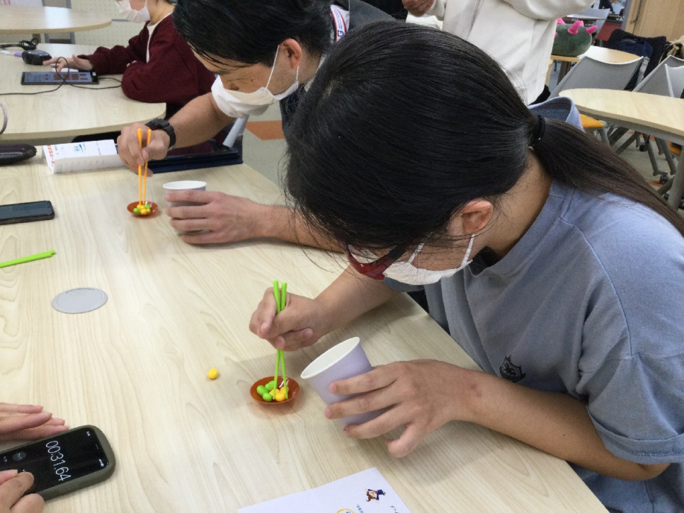 豆つかみ中。奥にいるキャンパス長は、この後とんでもない記録を出したとか…(最低記録)