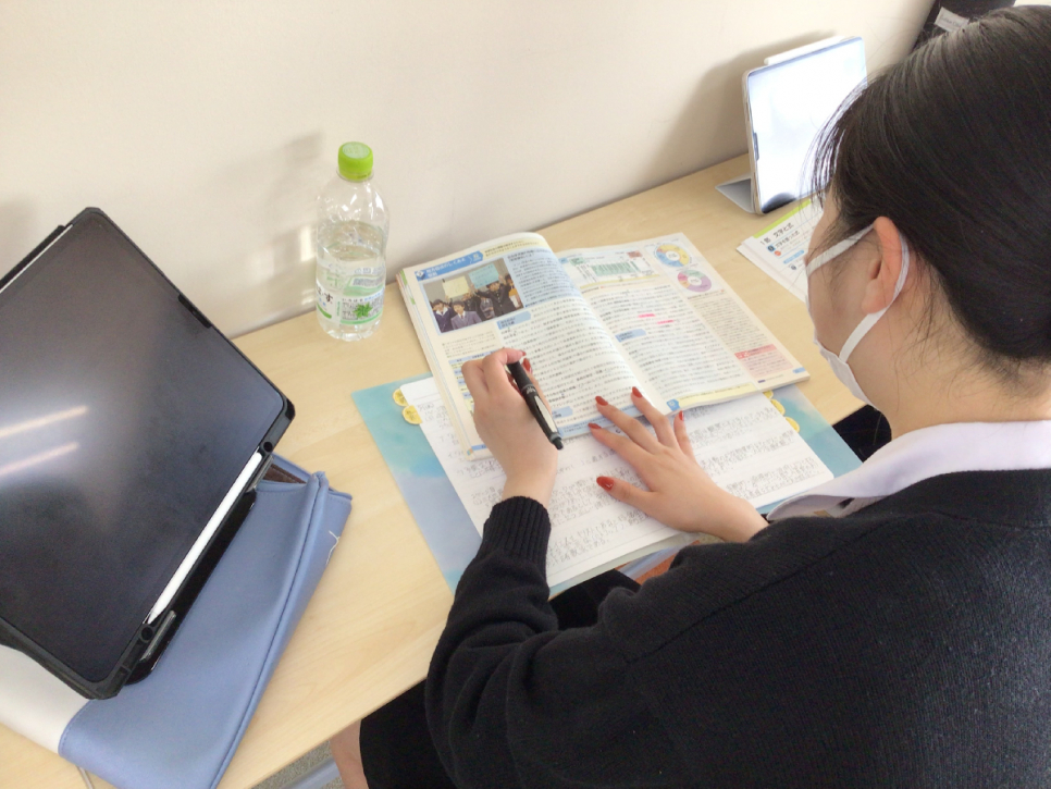 Y:わたしも1限目から来るようにしていて、一緒に自習室を使って学習しています。レポートだけでなくオンライン教材を使って数学の復習をしています。