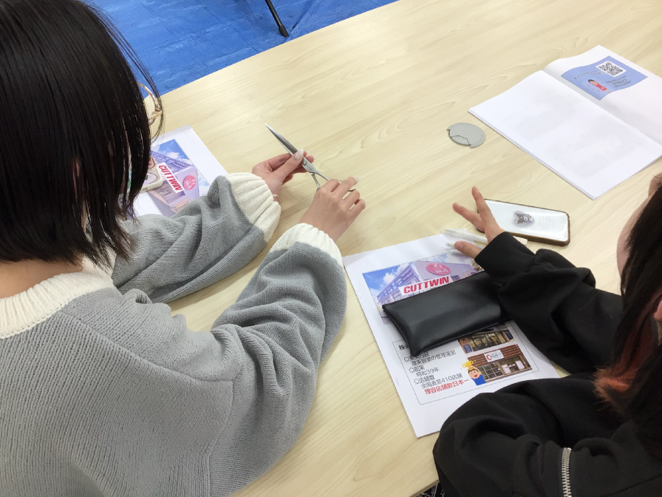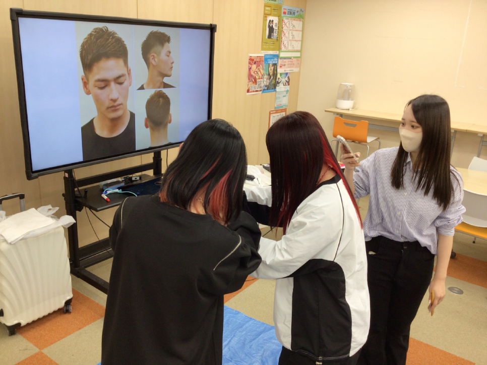 前半は、理容・美容に関する内容の講義、後半は実際にカット体験を行いました。