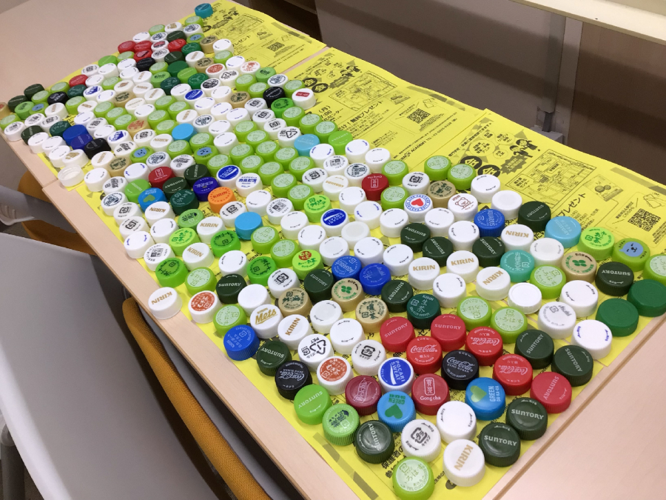 キャンパス内で集めているペットボトルのキャップ。