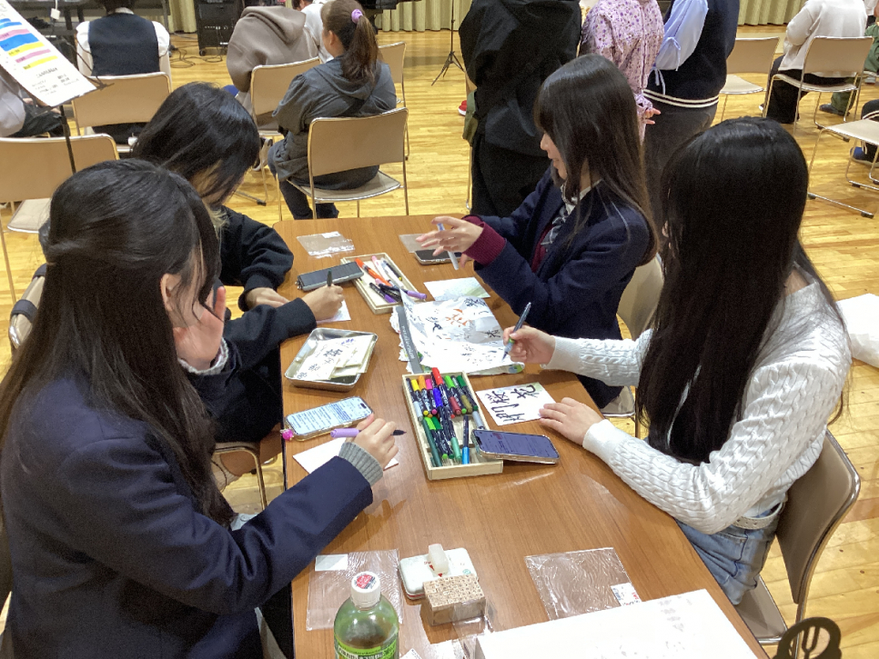 書道コーナーでは色紙にそれぞれの言葉を書いていきました☆彡