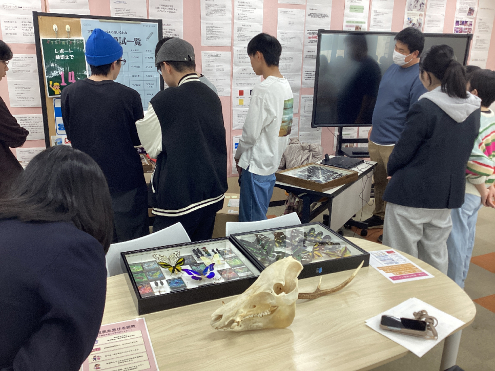 市役所職員としてのお話を聞きながらも、後ろにある標本が気になります…。