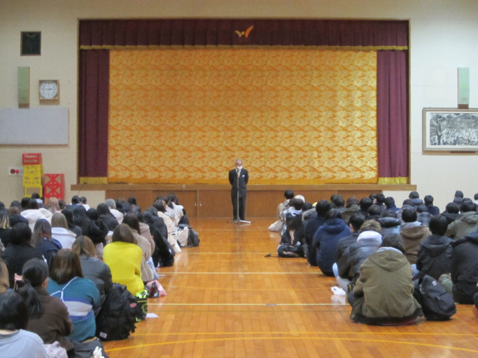 開講式の様子。校長先生から生徒達にご挨拶です。