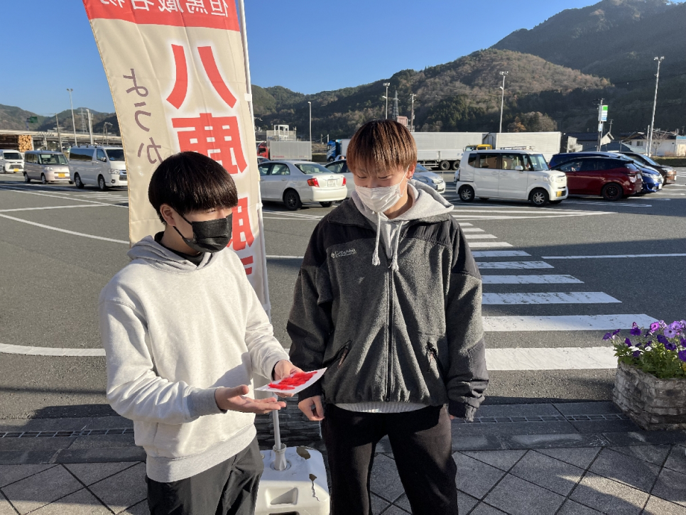 開始時には、緊張してなかなか声を出せなかった生徒も、段々と緊張がほぐれてくると元気に挨拶をして、募金の呼びかけを行うことができました。募金にご協力いただいた皆様、本当にありがとうございました。