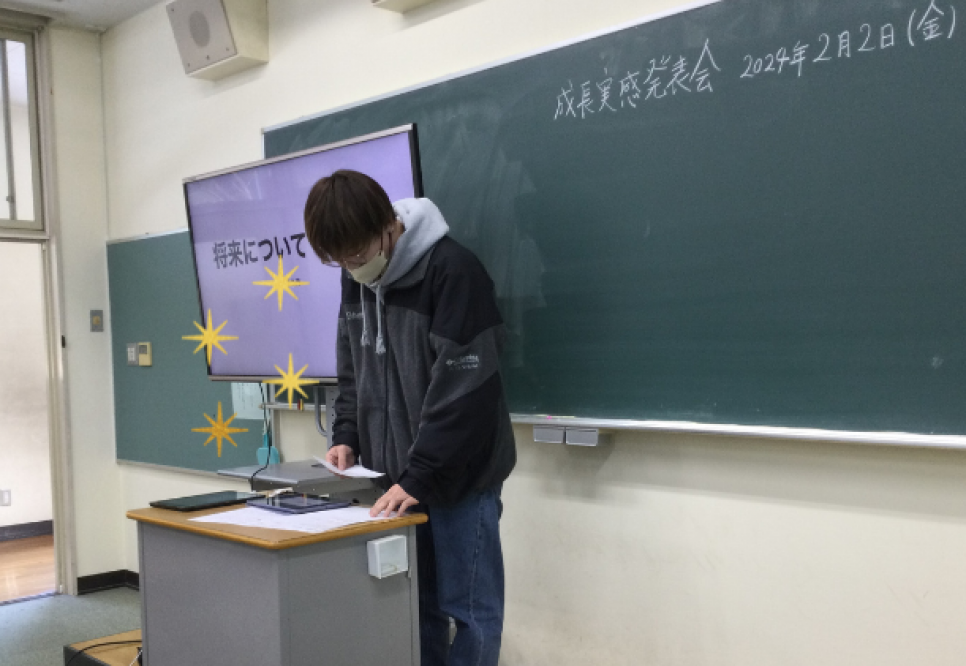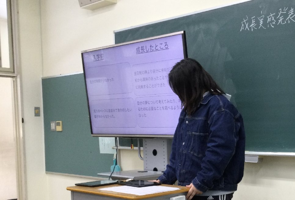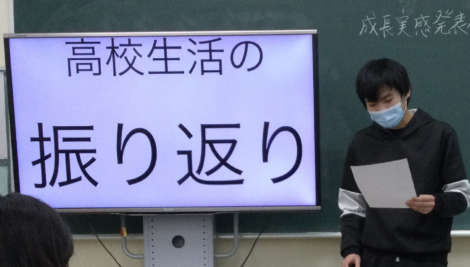 成長実感発表会は、学校生活の振り返りから自身が成長できたことや将来の進路などについて発表し、 生徒自身が成長を実感する場です。