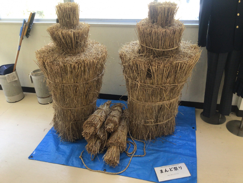 玄関に展示していたまんど。いよいよ万灯山に持ち上げです。