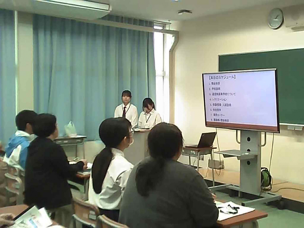 在校生による学校生活の紹介、校舎見学、体験授業などを通して、本校の教育活動や雰囲気を体感していただけたのではないかと思います。 特に在校生による案内や発表では、日頃の学校生活で育んできたコミュニケーション力や主体性が発揮され多様に感じました。