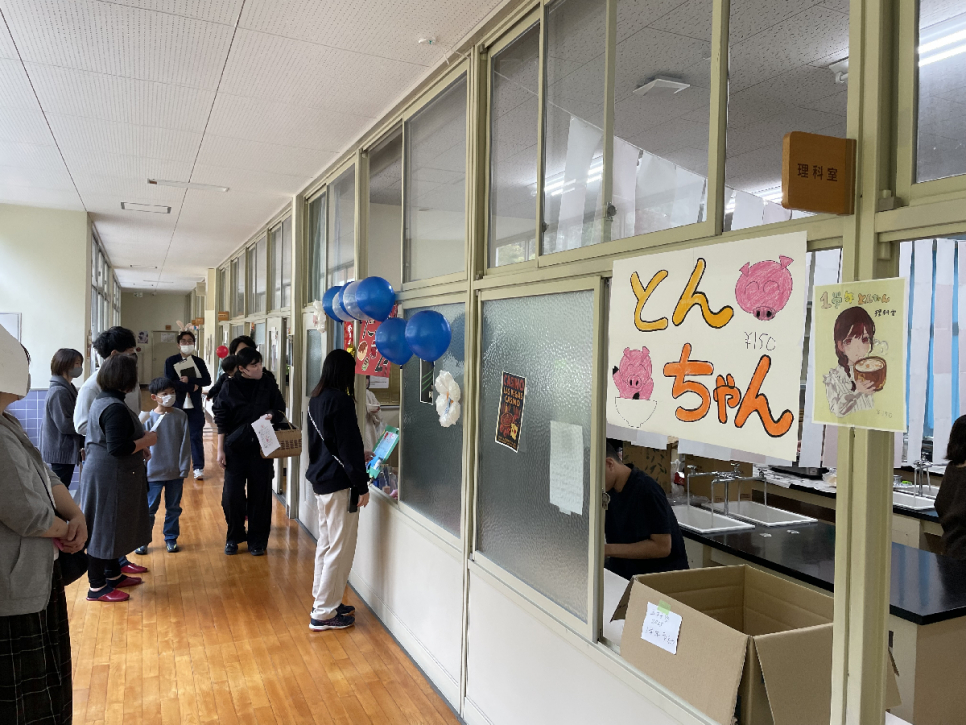 今年の五好祭では、各学年の工夫を凝らした模擬店や、総合的な探究の時間のプロジェクト活動から発展して地域の企業体と共同で催した模擬店もいくつかありました。また体育館ではスクーリング生による習字の展示や有志の生徒による音楽ライブも行なわれました。