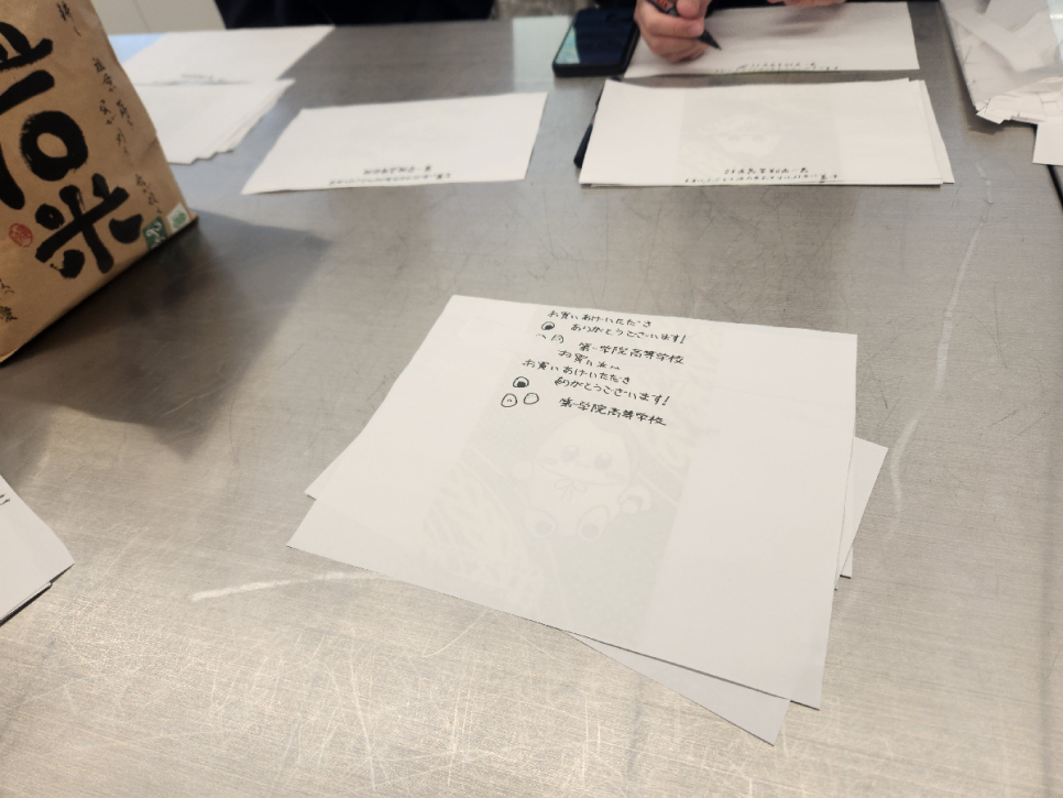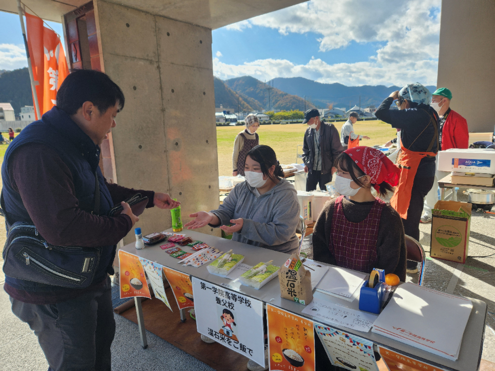 みなさん、こんにちは。やぶログ の時間です。 先日の11月22日(土)に開催されたシルバー豊年祭りに参加しました。シルバー豊年祭りでは、養父市シルバー人材センターと一緒に棚田で育てた天日干しの温石米を炊いて、販売しました。パックの帯の絵は養父校の生徒がデザインしてくれました。買ってくれた方への感謝を込めて、帯の裏側にコメントを書きました。最初は販売することに緊張していたのか、接客の声も大きくありませんでしたが、シルバーのみなさんの声掛けのアドバイスもあり、ご来場の方に自分たちから声をかけられるようになりました。その結果、自分たちで用意した温石米のパックを全て完売することができました。このお祭りでは地元のみなさんとのつながりを改めて感じることができました。当日ご来場いただきました保護者の方々、地域の方々、本当にありがとうございました。やぶログでは 本校通学コースの様子 はもちろん、 スクーリングの様子 や 養父市の様子 もお伝えしていきたいと思いますので、どうぞよろしくお願いいたします。