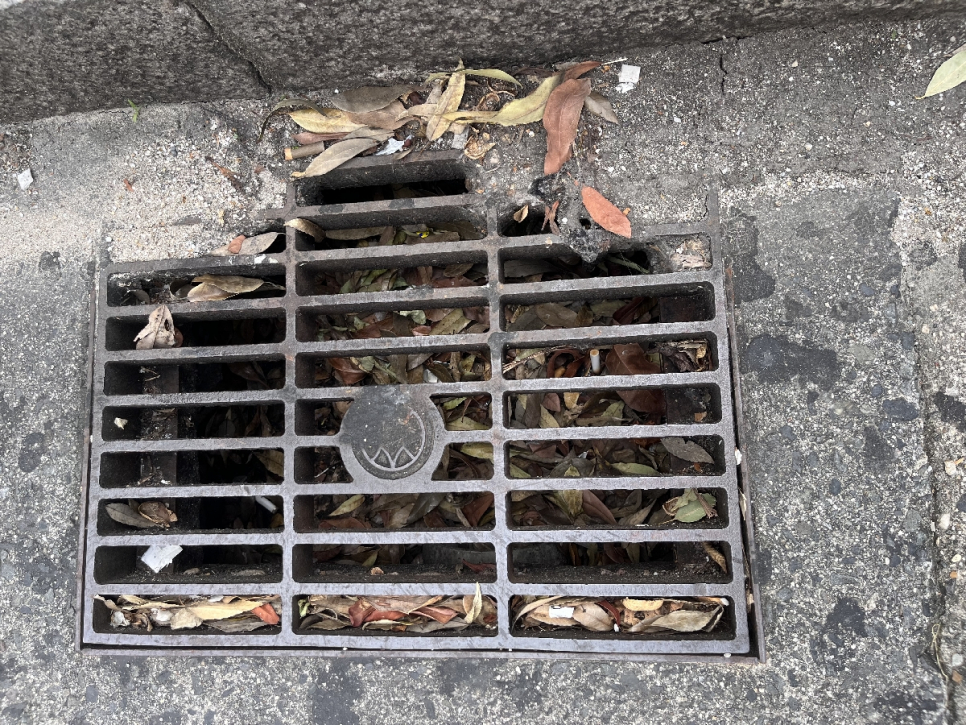 側溝のゴミを取るのも一苦労です。