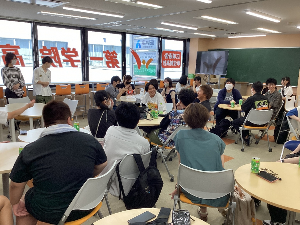 卒業生や異動された先生方が四日市キャンパスに来てくださいました。在校生がおもてなしをしながら、卒業生の近況を聞きました。大学へ進学した人、専門学校へ進学した人や就職した人。一人ひとりの卒業生がそれぞれの場所で頑張っている様子が伺え在校生も励みになりました。