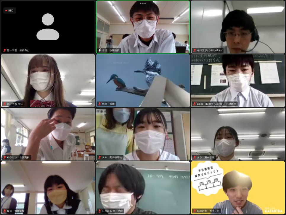宮崎県立高千穂高校、島根県立吉賀高校、茨城県立小瀬高校とオンラインでつながり、各学校の紹介やお互いの自己紹介をしました。