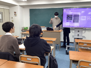 前期最後の授業では、生徒たちが自分で作ったゲームを楽しそうにプレイしていました♪
