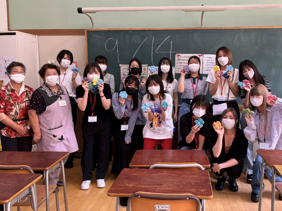 体験学習では、地域の方に教わりながら作品を手作りします。