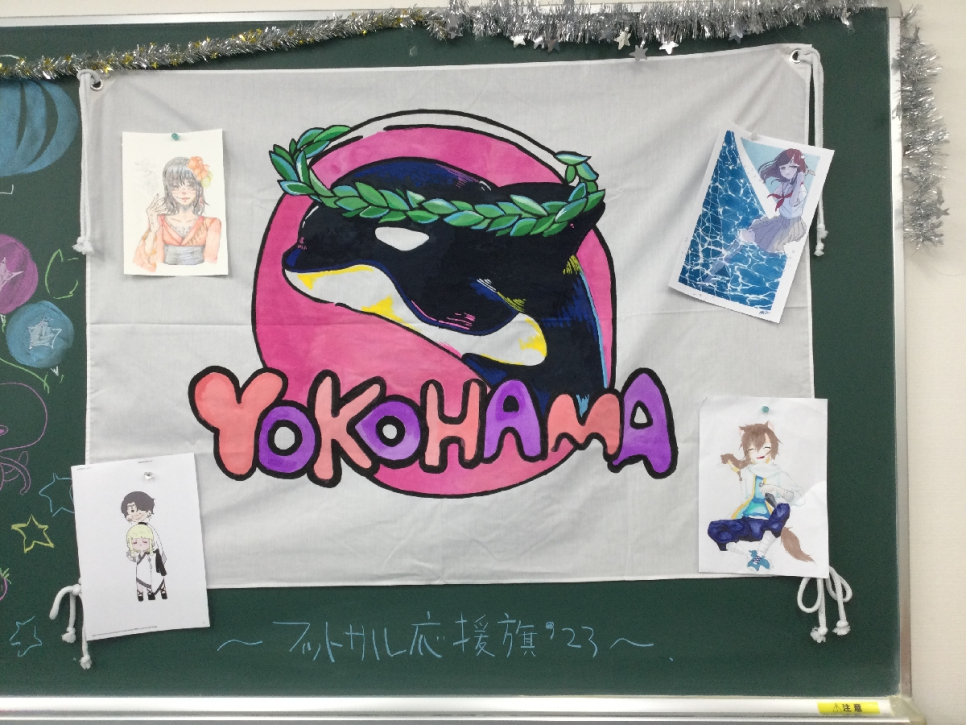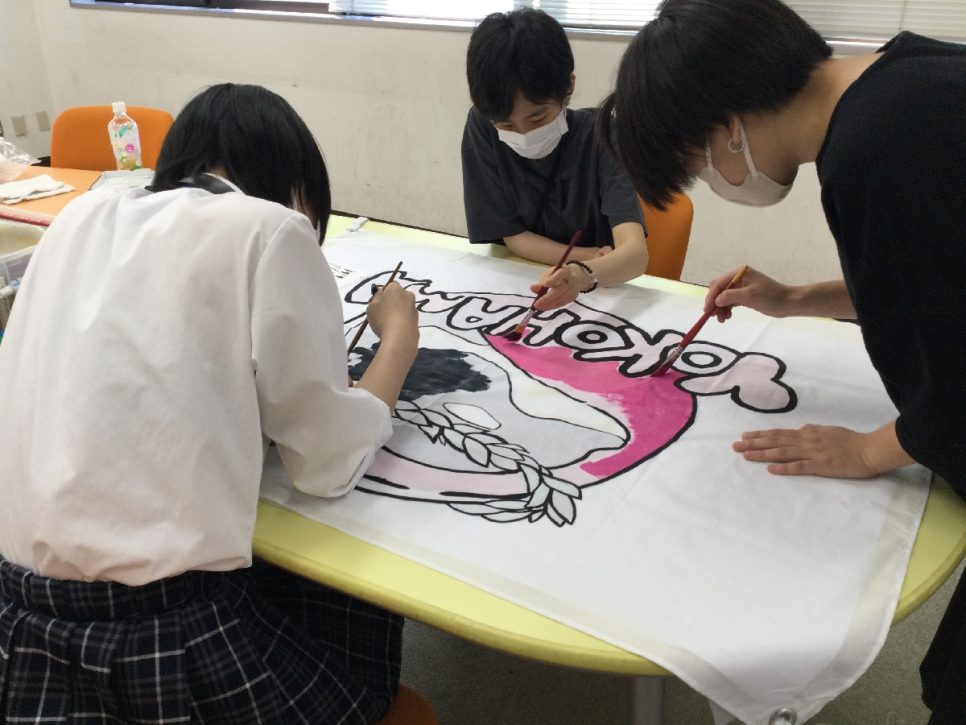そこでイラストサークルのみんなで応援旗を制作しました!