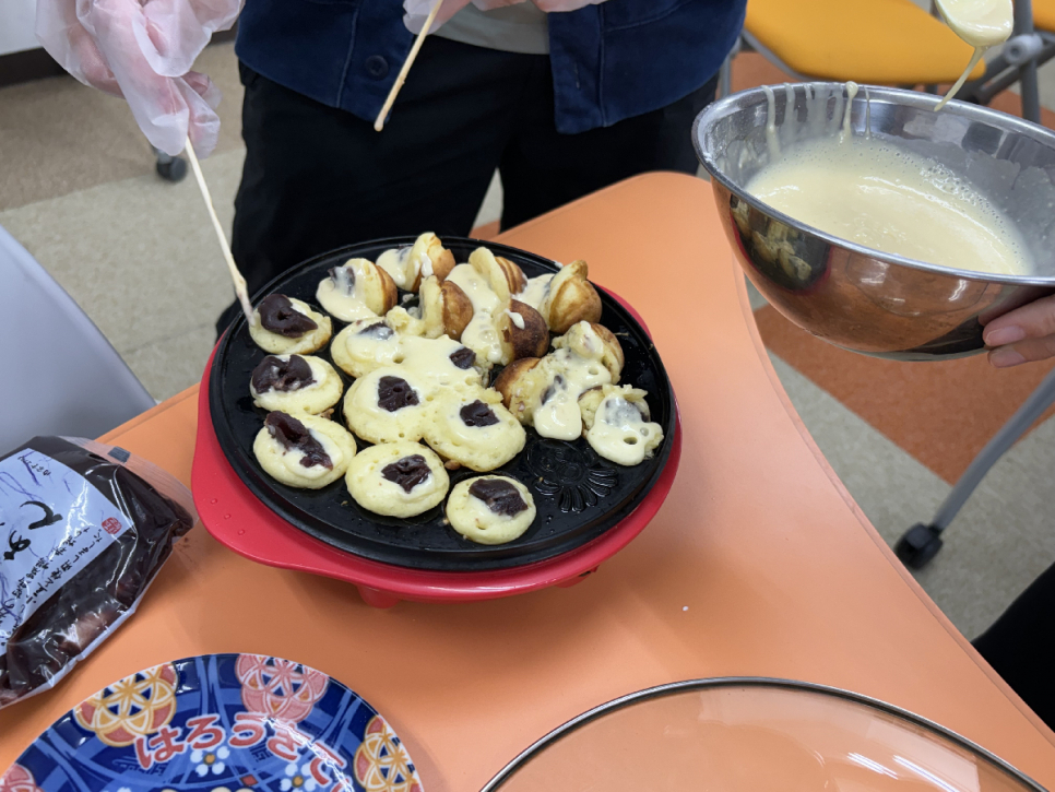 味に飽きないように、クレープの中にフルーツではなく、クリームとあんこをセットしたり、ベビーカステラの中にもあんこを入れたり、工夫して調理しました。