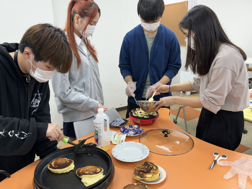 作ったことがある生徒がお手本を見せて、ほかの生徒もそれを参考に初めてのお菓子作りを行いました。