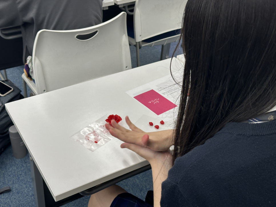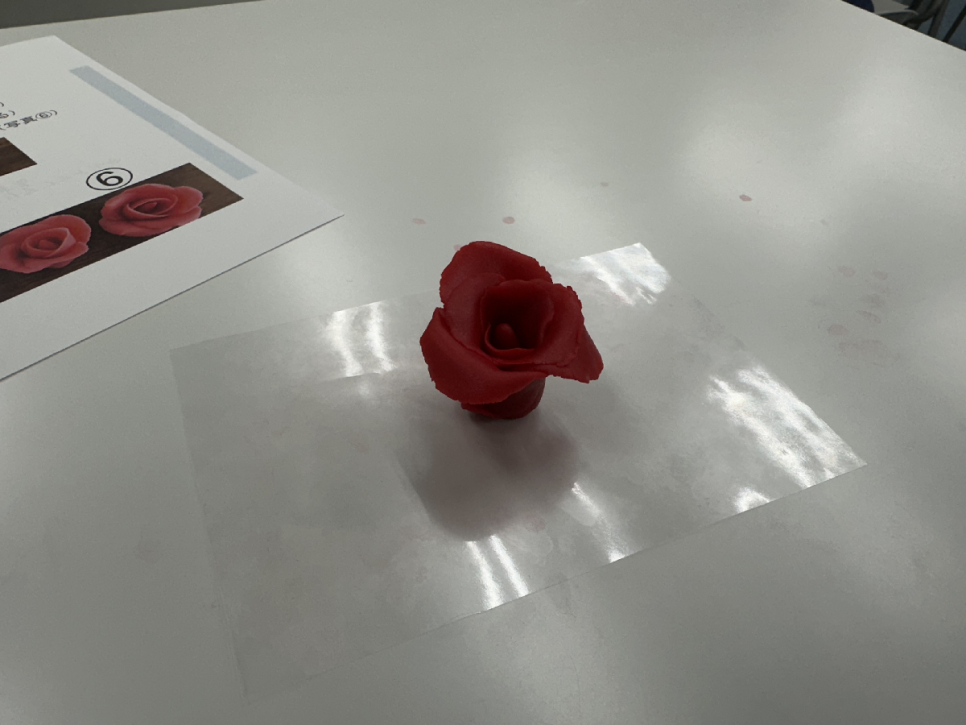 今回はマジパンを使って赤い花の装飾作りに挑戦です。