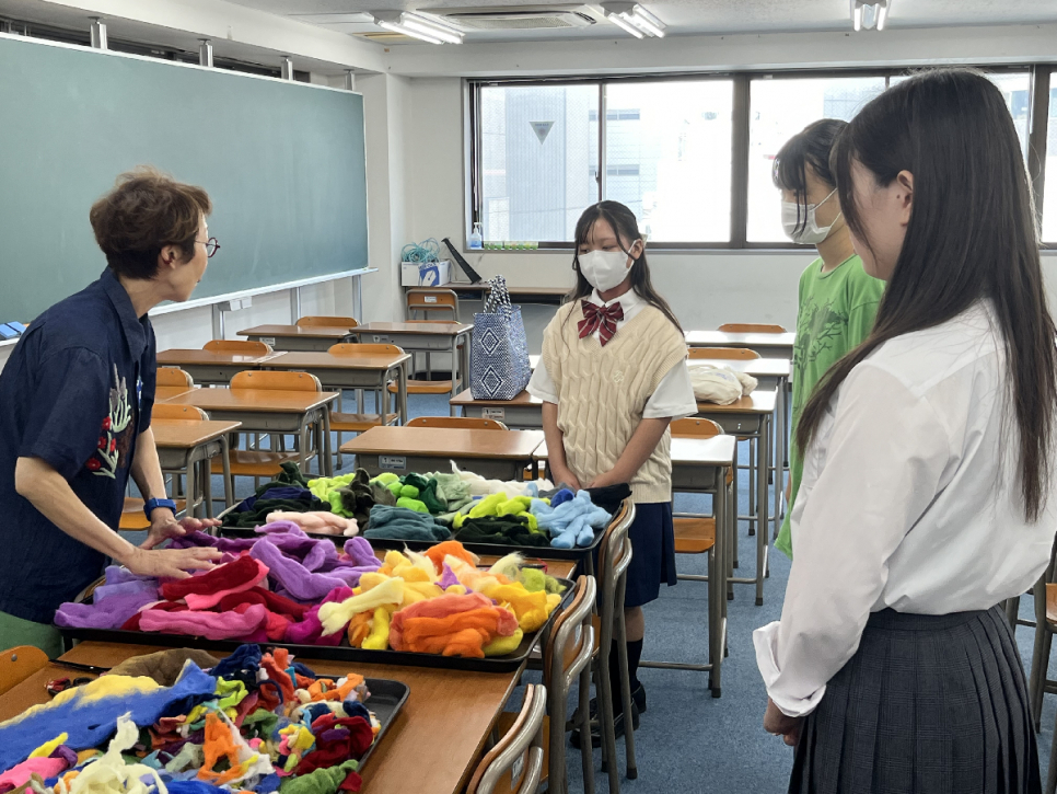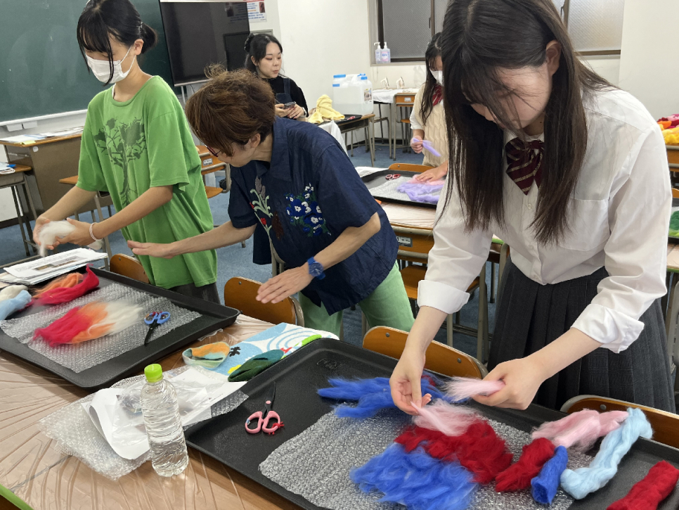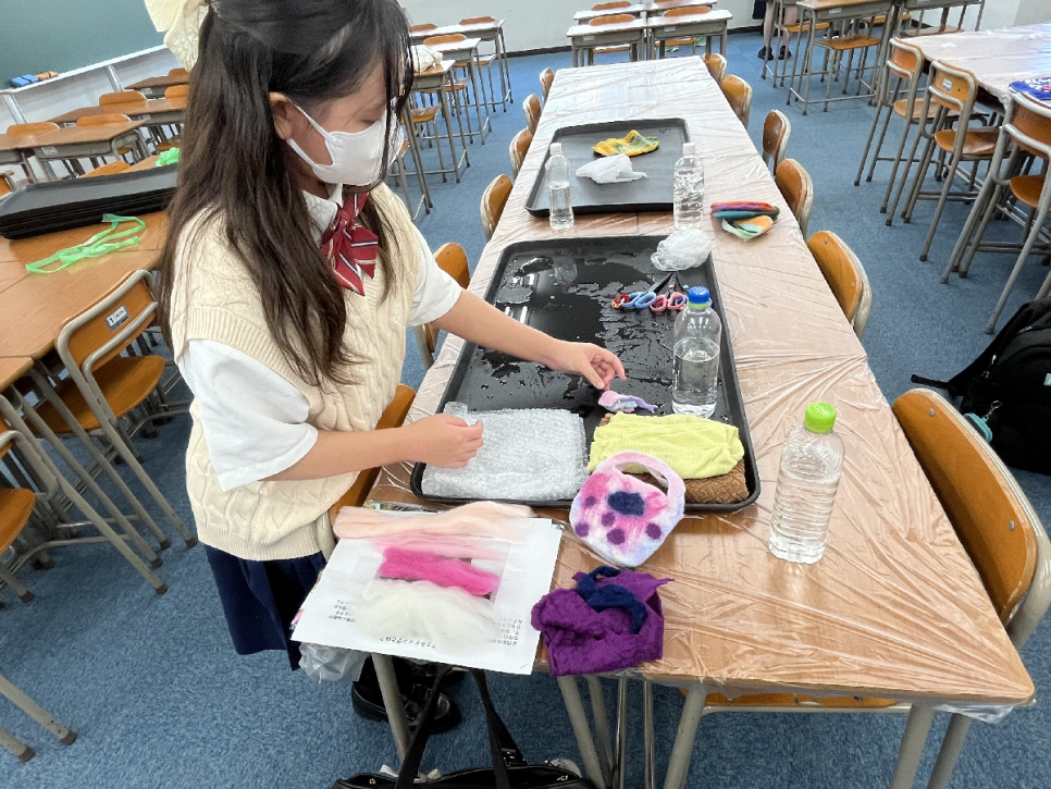 羊毛を何層にも重ねてからめることでどんどんと出来上がってくる作品に生徒たちも大盛り上がりでした。