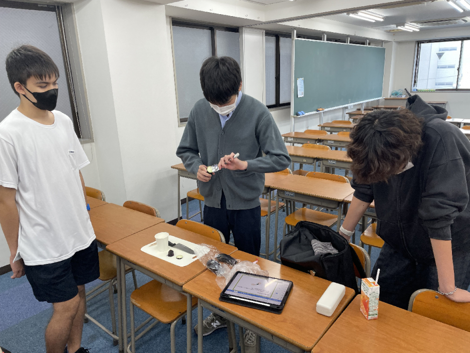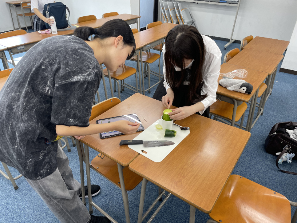 ナス、ズッキーニ、ニンジンを使用して行い、グループごとに協力して実験を行えていました!