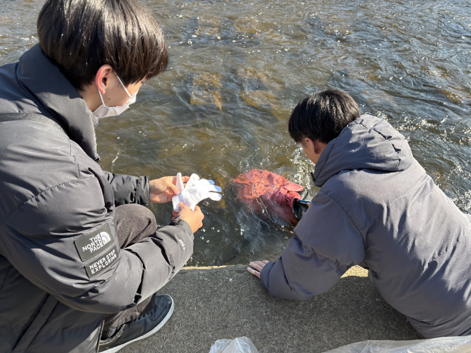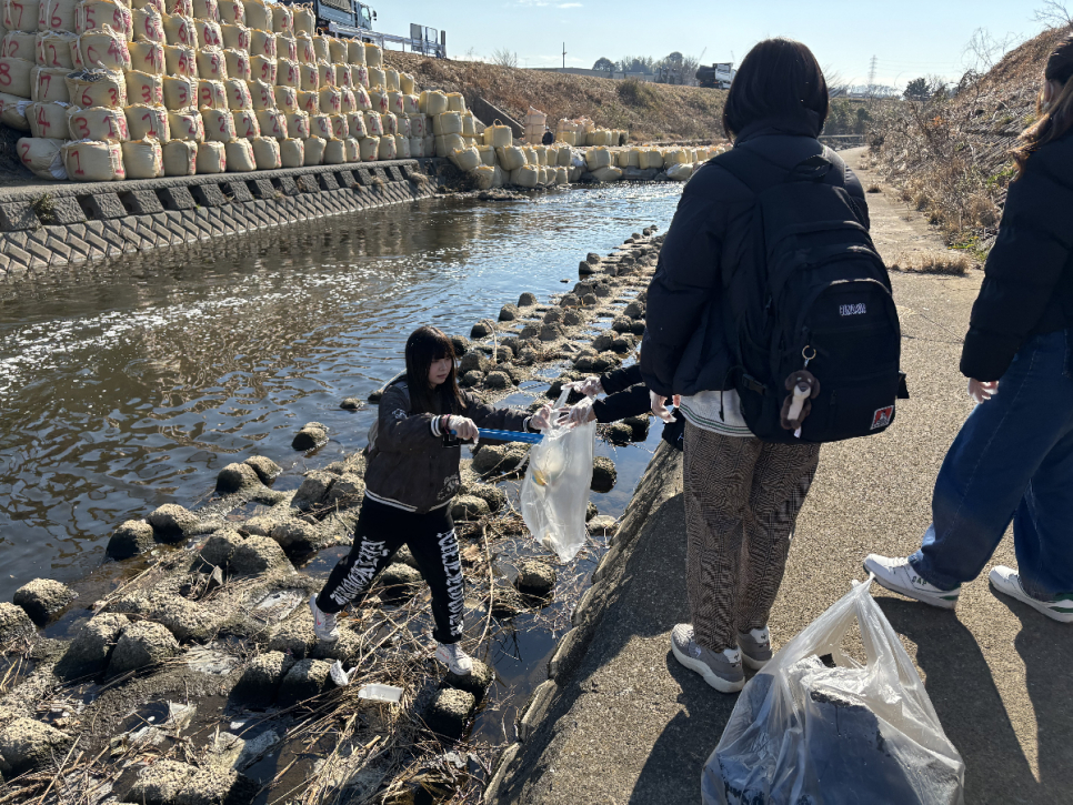 寒い日が続き、川の水も冷たいですが、川の中に手を入れてゴミを拾う生徒もいるなど、生き生きとこのボランティア活動に参加していました。