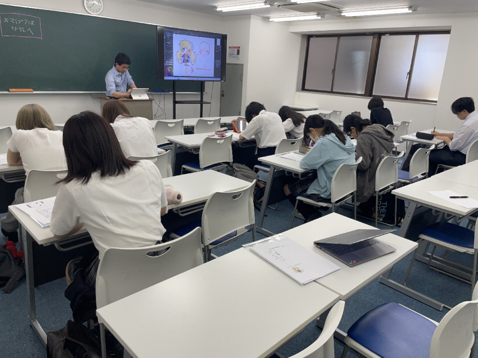 先日、中央美術学園の先生にお越しいただき、イラストの体験授業を行っていただきました!プロの講師の方から立方体からの顔の描き方や、角度の異なる顔の描き方、手の描き方などを細かく教えていただきました✨