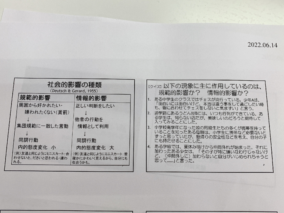 四ツ谷の生徒は心理学に興味がある生徒が多く今回の夢授業に多くの生徒が参加しました。