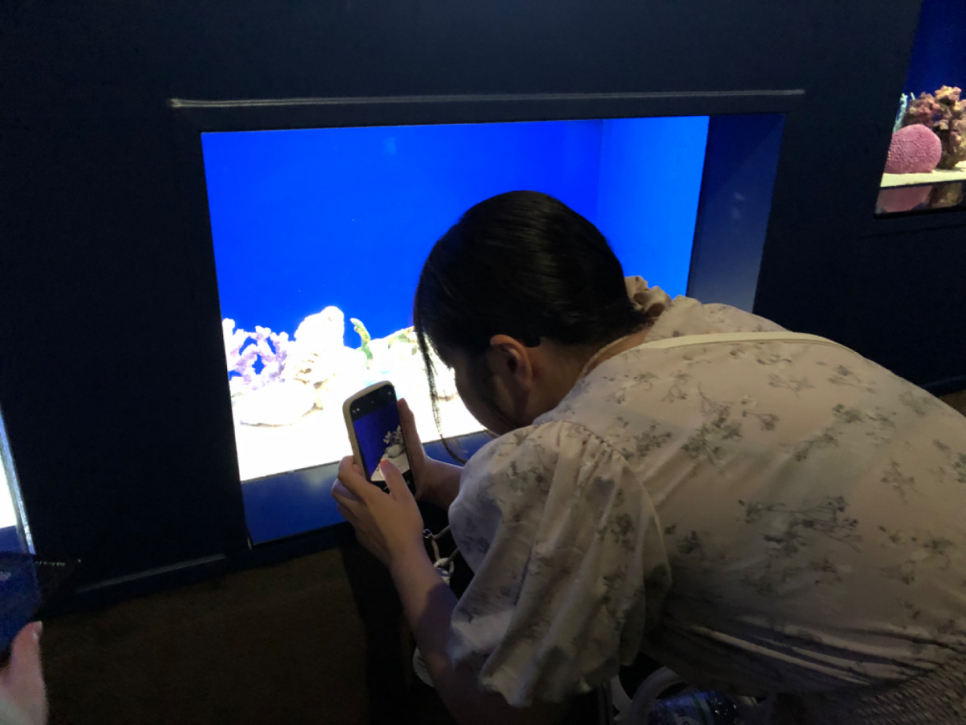 展示を見て回る中では、珍しい魚や幻想的なクラゲ、迫力あるアシカの泳ぐ姿などに、みんな興味津々。