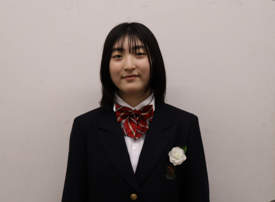 先生から在校生代表をお願いされたとき、そもそも人前に立って話すのがあまり好きではないので返事に悩みました。1年前に新入生代表で声をかけてもらったときはそれが理由で断っています。でもこれまでの1年間を振り返って、同じように人前で話すのが苦手な友人たちが色々な場面で挑戦していた姿を思い出して、私は何にもできていないな、やったほうがいいなと思ってやることに決めました。すごく緊張したけど実際やってよかったです。これからなんでもいける気がします。だって絶対無理だと思っていたことができたから。家に帰ったら応援してくれた母に「もうなんでもできる!」と自信をもって報告したいと思います。