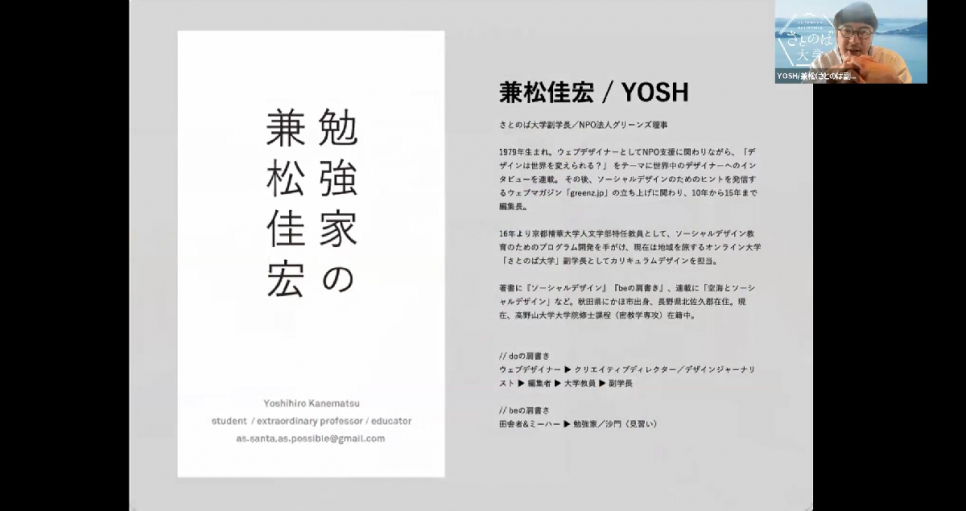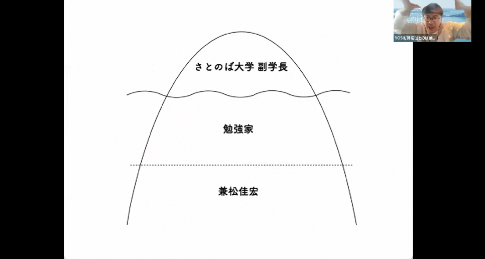 兼松先生はさとのば大学の副学長を務め、自身の「beの肩書き」を『勉強家』として活動されています。
