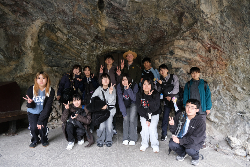 午前中はESL、午後はティンパノーガス鍾乳洞でのアクティビティを行いました。留学期間の中で最もハードな、山でのハイキング&鍾乳洞に入ってハイキングです。レンジャーさんから英語で説明を受けて、「あ、分かる!」と笑みがこぼれる生徒たちでした。