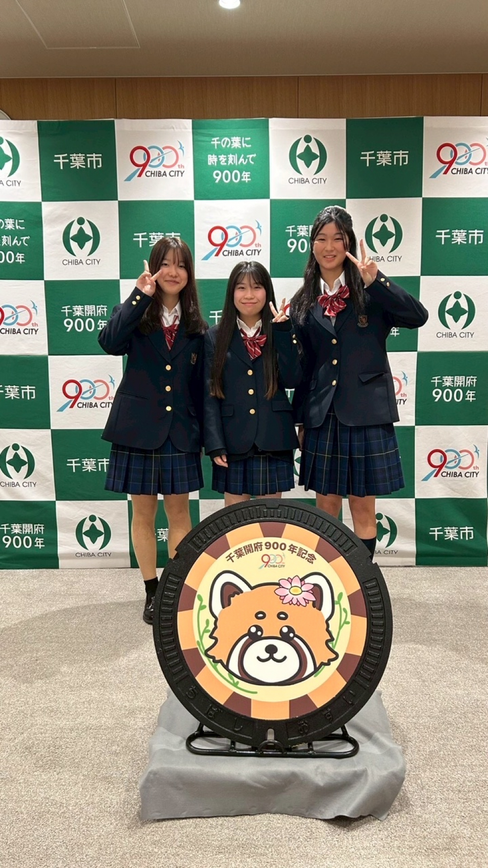 第一学院高等学校 千葉キャンパス 在校生の越田菜奈さん、秋葉亜衣さん、森川真さんがデザインしたマンホールの蓋が、千葉開府900年記念として制作されました。