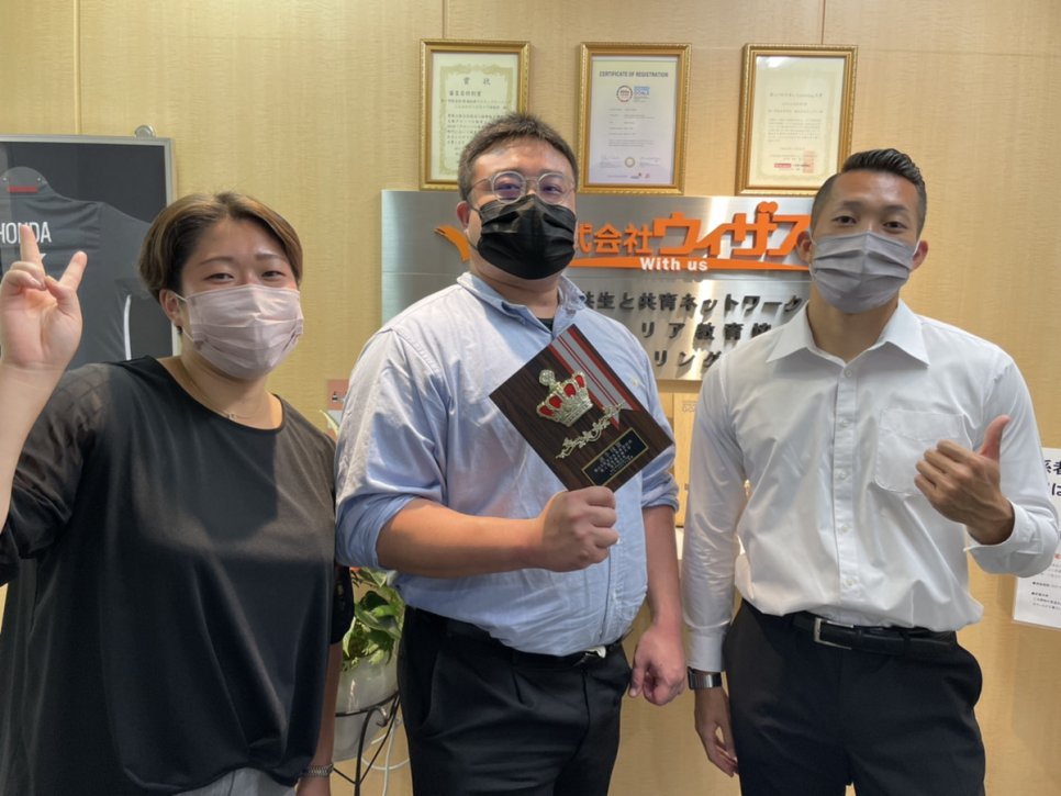 緊急事態宣言発令など大会に向けてトレーニングが思うようにできませんでしたが、生徒をはじめ、当日競技場に足を運んでいただいた職員の皆様など会社の大きなバックアップのおかげで勝負に勝つことができました!応援ありがとうございました!