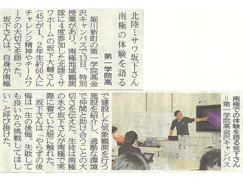 2022.9.21「秋田魁新報」(2022年9月14日付)に、第一学院高等学校 秋田キャンパスの夢授業の様子が掲載されました。第一学院高等学校 秋田キャンパスでは、三交モータース商会(秋田市)常務理事の金森登志雄さんを講師に迎えての夢授業を9月5日に行いました。当日は映像を見ながらドローンの将来性を学び、三交モータースによる高校生向け「ドローンスクルール」や自動車学校の事業についての説明を受けました。2年生の佐藤逢夢さんは「ドローンの活用によって、将来の街は大きく変わるんだなと思った」と感想を語りました。夢授業は13日に別のテーマでも実施。地域の課題を見つけ、解決策などを探るプロジェクト型学習に生徒たちが取り組む様子も紹介されています。ぜひ、ご覧ください。 -