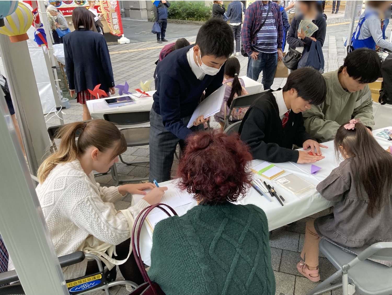 国際交流フェスは、藤沢市の外国籍の方をサポートする団体が開催するイベントです。様々な国の食べ物や文化を体験できるもので、そこに藤沢キャンパスも出展しました。僕たちは外国籍の方の名前を、趣味や好きなことに当てはめて漢字で表現したり、参加者に喜んでもらえそうな折り紙を教えたりしました。ポーランドやエジプトなどの今まで話したことがない国の方々がブースに来てくれた時に、その方が好きなことを色々教えてくれて、たくさん話せたのがすごく嬉しかったです。外国籍の方だけではなく、イベント会場に来ていた近所の子どもたちも折り紙を教わりに立ち寄ってくれて、一緒に楽しむことができました。
