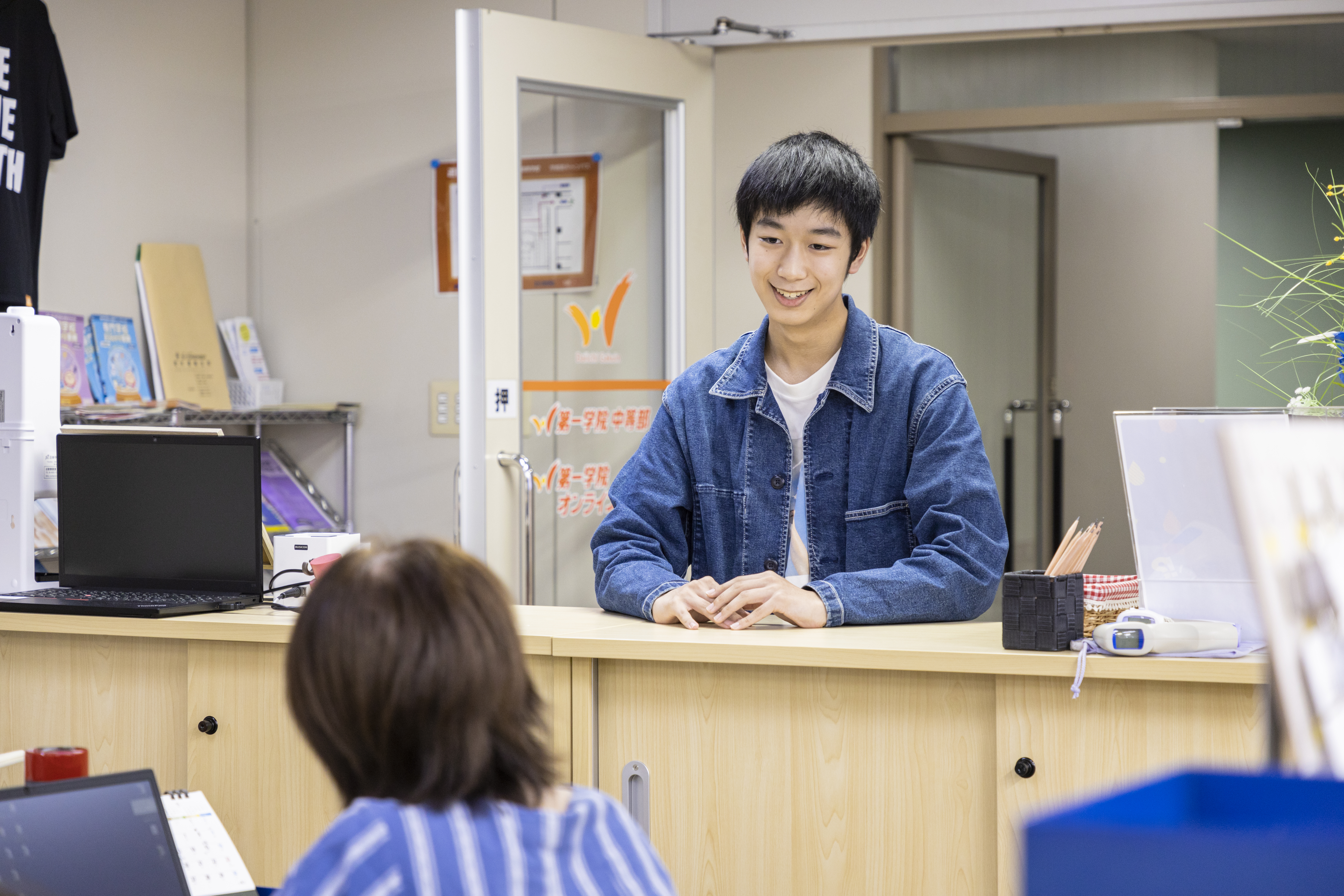 自分の体調に合わせて場所を選ばずに授業が受けられる。大学進学もしっかりサポートしてくれる第一学院で、夢の実現に向かって頑張っています。