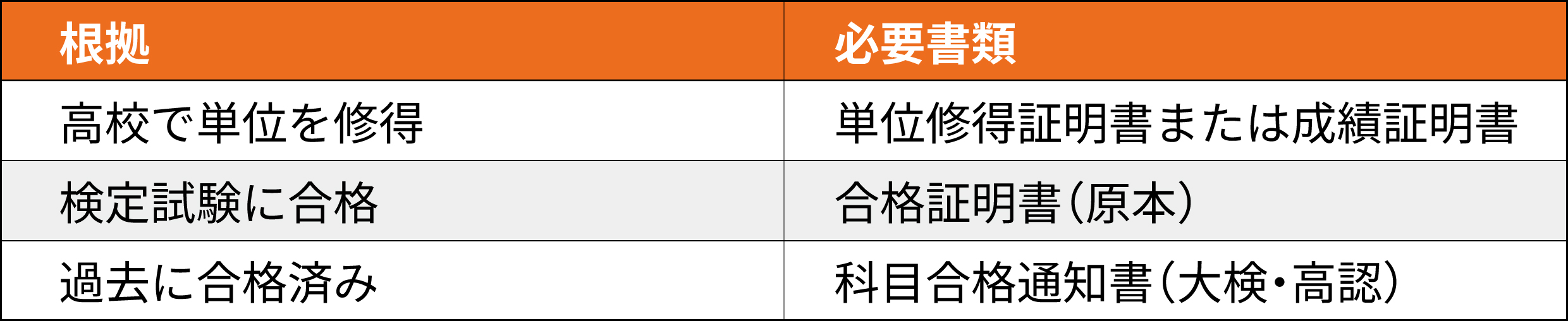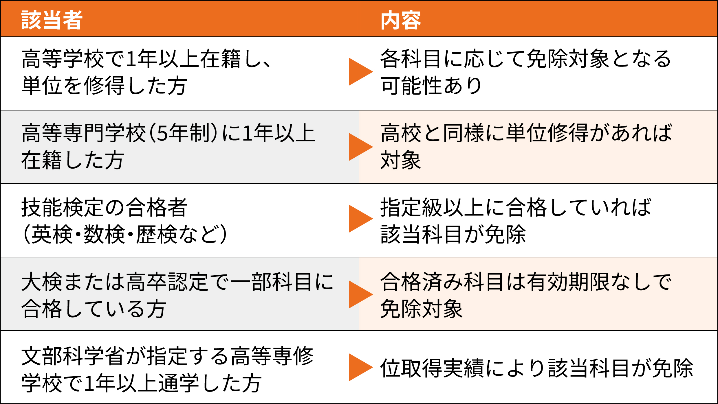 高校で単位を取得している場合や、資格検定に合格している場合は、科目免除を申請できます。