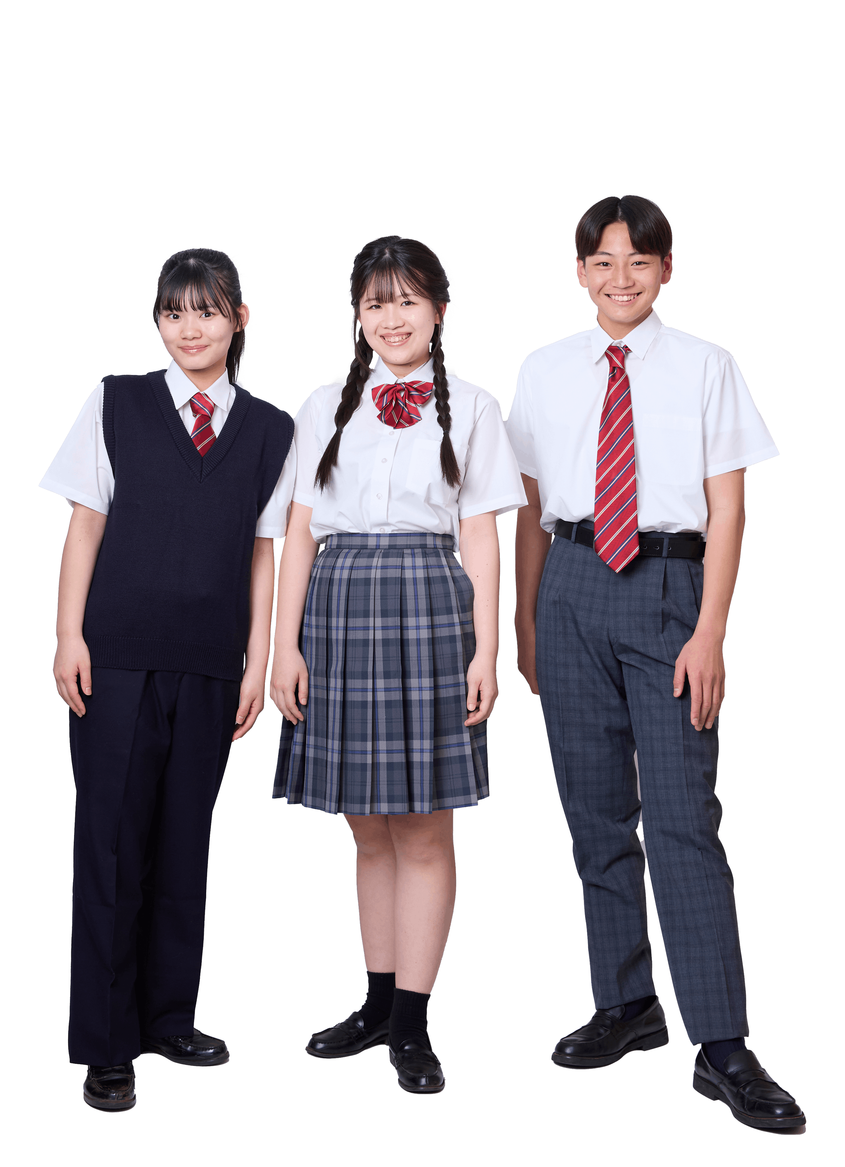 女性の制服については、スカートだけでなくパンツスタイルも選択可能で、スカートに抵抗がある生徒も安心して着用できます。