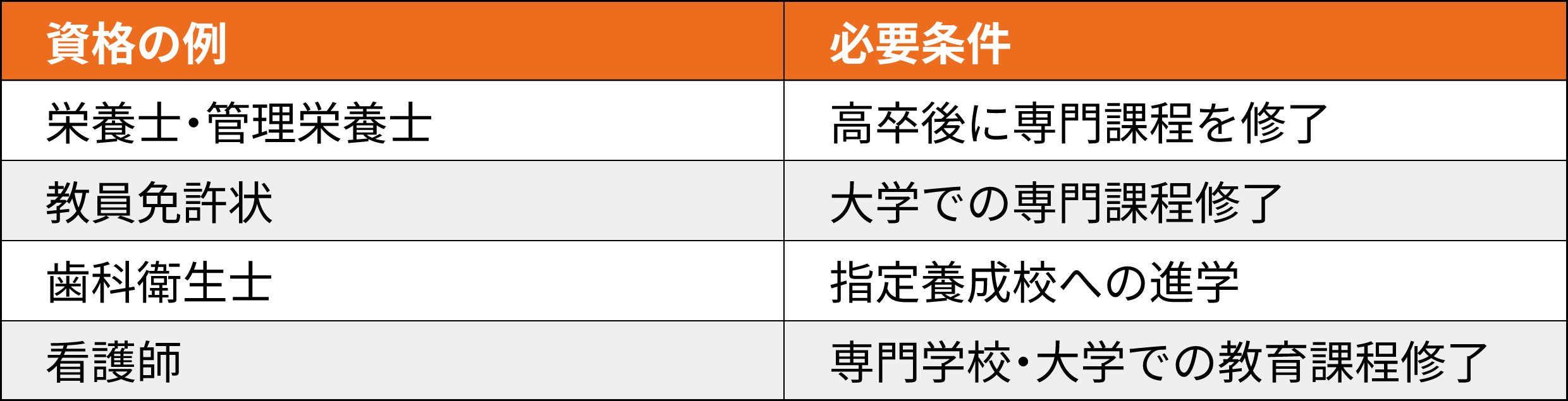 一部の資格は学歴要件として「高校卒業」を条件にしています。代表的な資格は次の通りです。